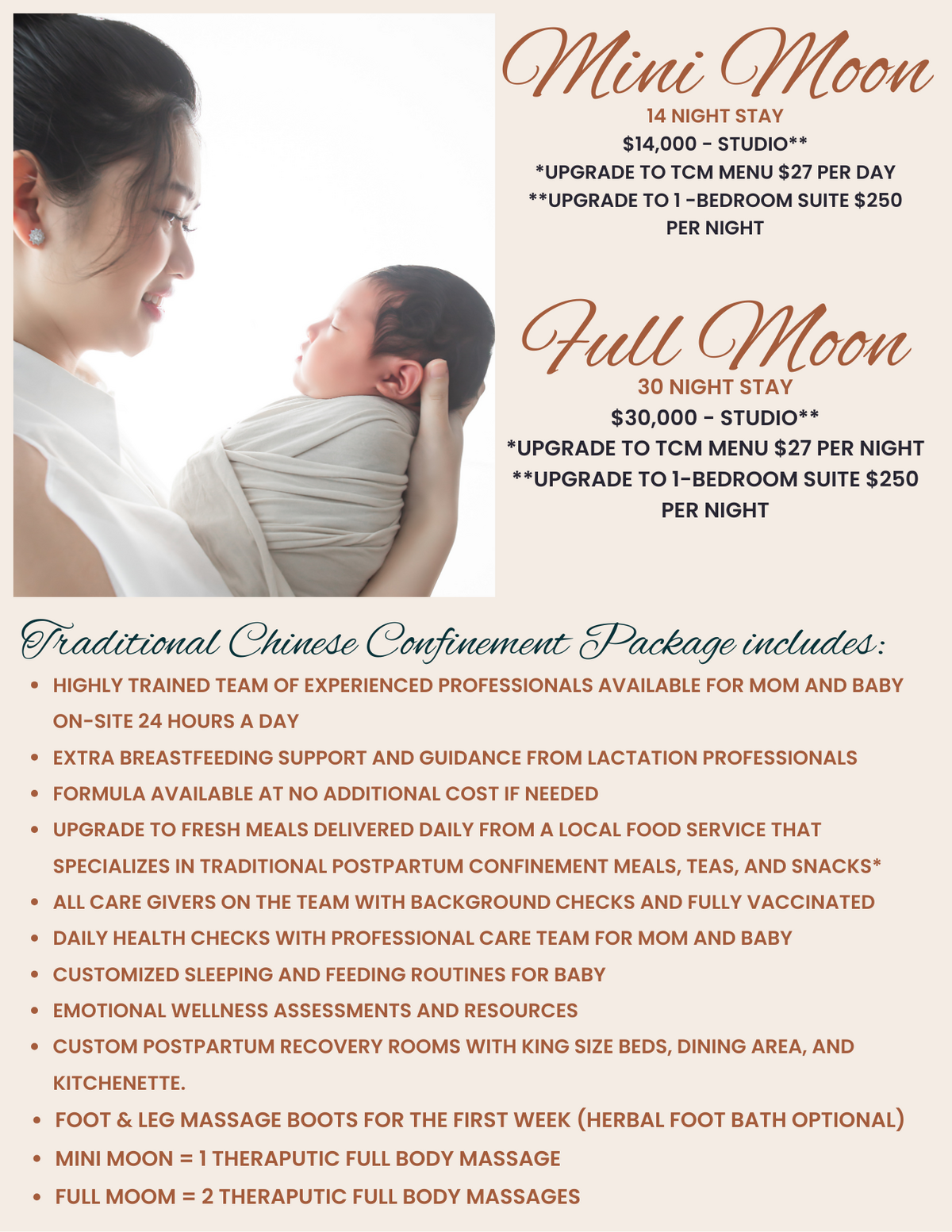 ✓ Postpartum meals delivered 3 times a day: Included!